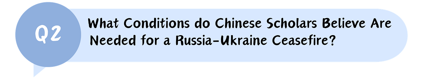 Has China provided support to Russia? Under what conditions do Chinese scholars believe a ceasefire could be achieved? What are the main concerns Chinese scholars hold regarding the conflict?