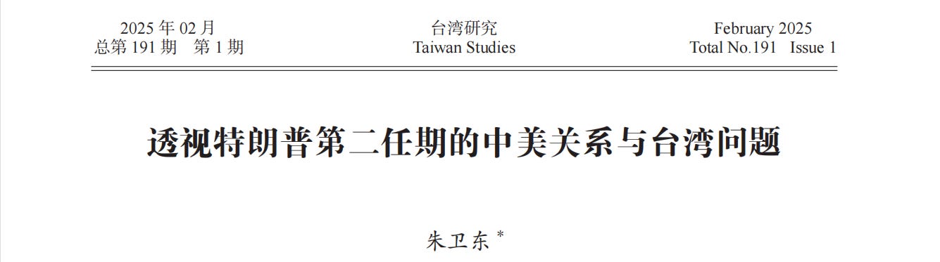 Today, we have selected an article written by ZHU Weidong, which focuses on China-U.S. Relations and Taiwan Question during Trump 2.0.
