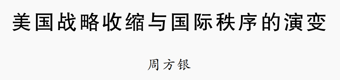 Today, we have selected an article written by Zhou Fangyin, which traces the course of U.S. strategic retrenchment and examines its impact on the international order.